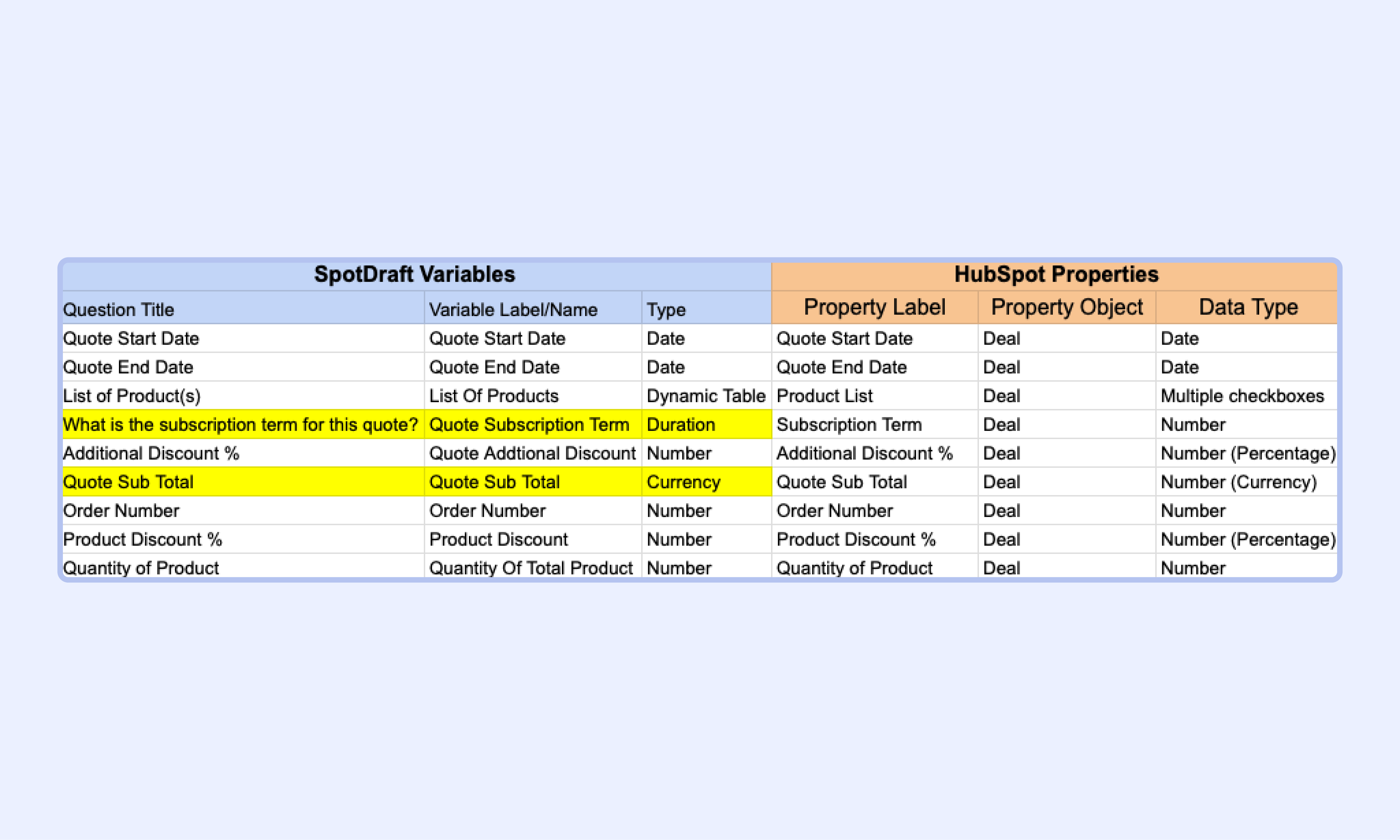 Mapping Sheet: A mapping sheet is essential for automating the flow of data between HubSpot and SpotDraft when setting up the Create from template workflow.