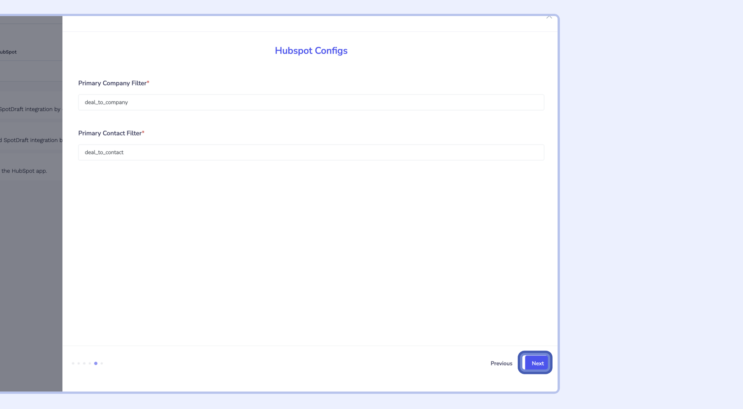 5.1 - In the Primary Company Filter field, enter the internal name of the HubSpot association that represents the Primary Company.