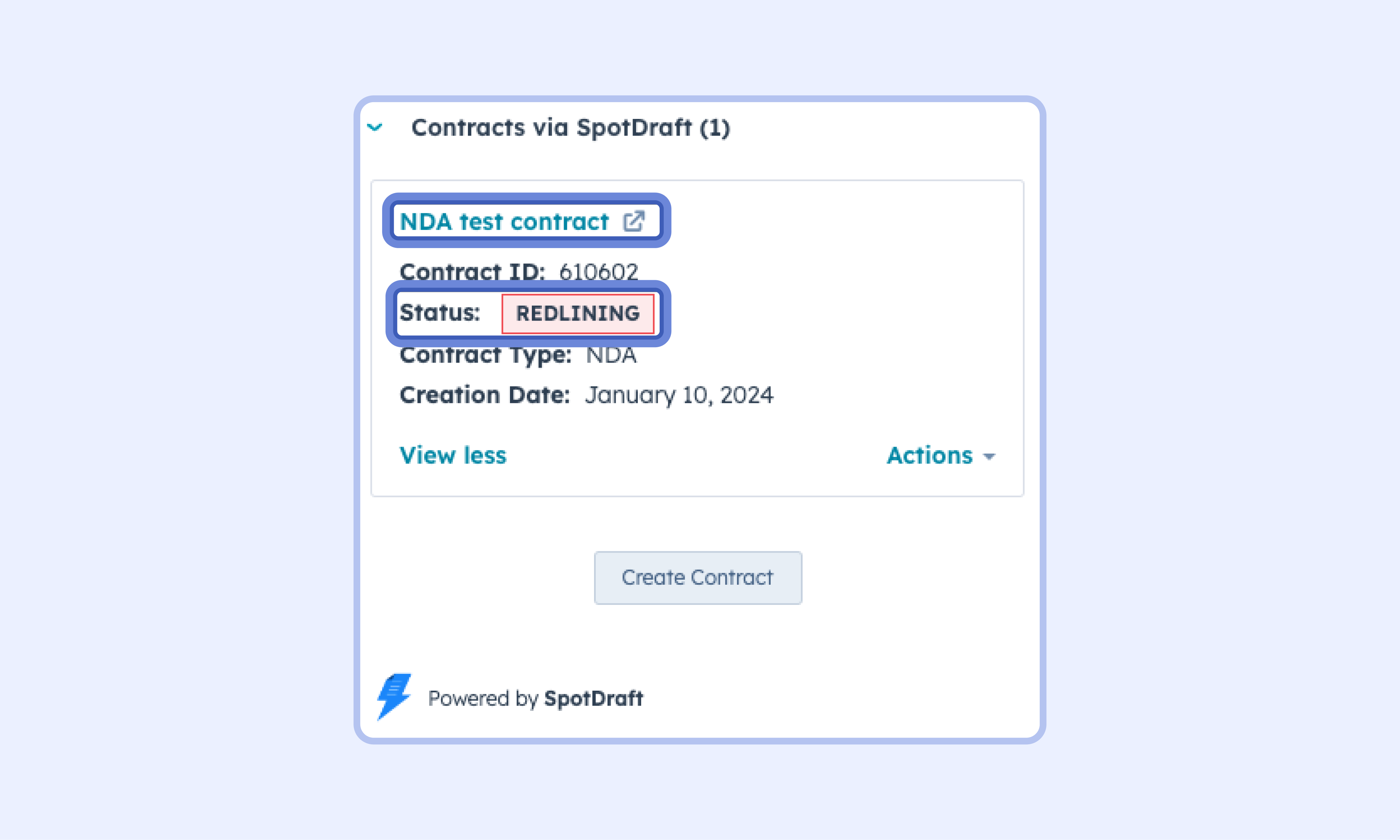 - Visibility and Tracking: Track contract status in real-time in HubSpot, offering immediate insights into the contract lifecycle.