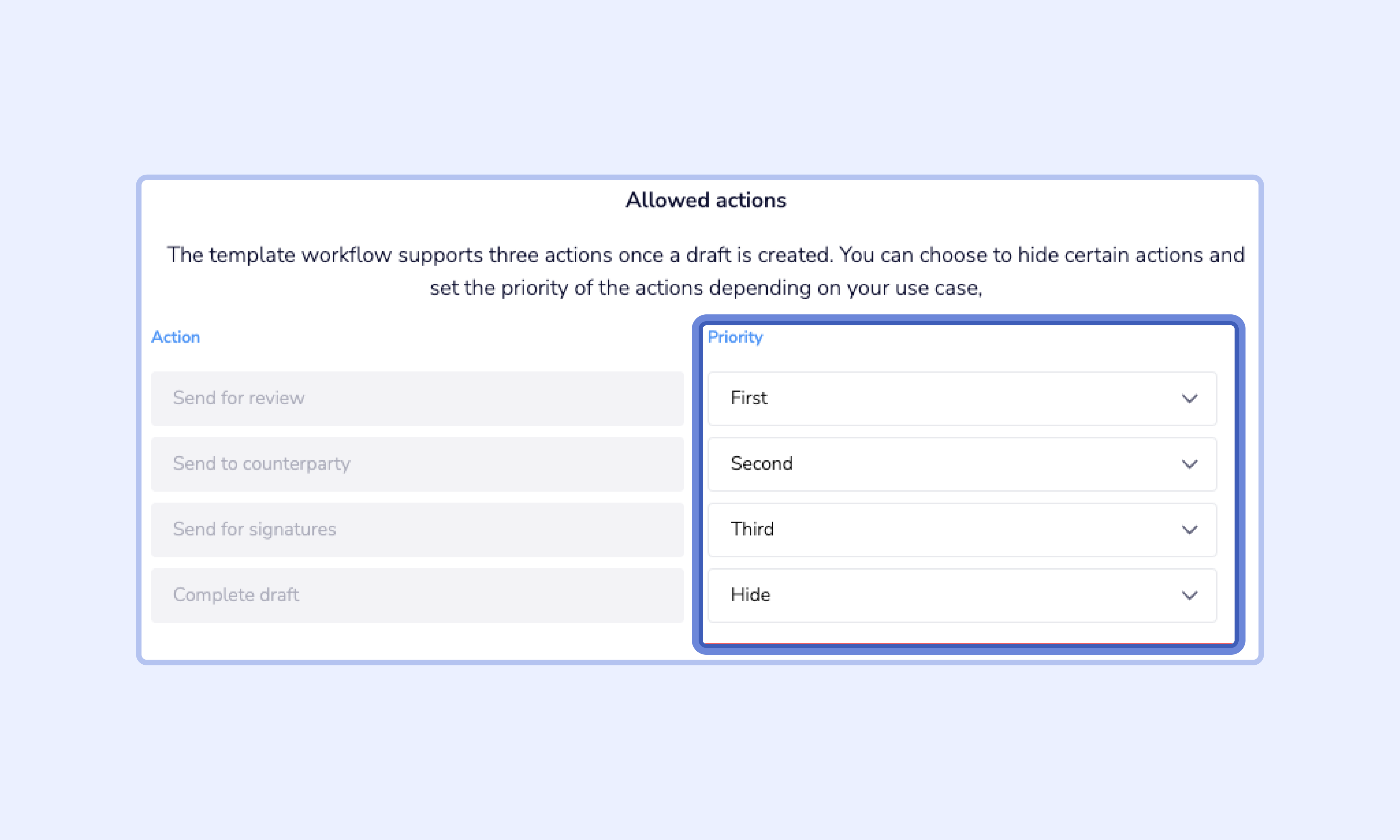 💡 Tip: To make it simple to identify the different Contract Templates’ configurations, prefix the ‘Name’ with the name of the Contract template e.g. CPQ, NDA etc..