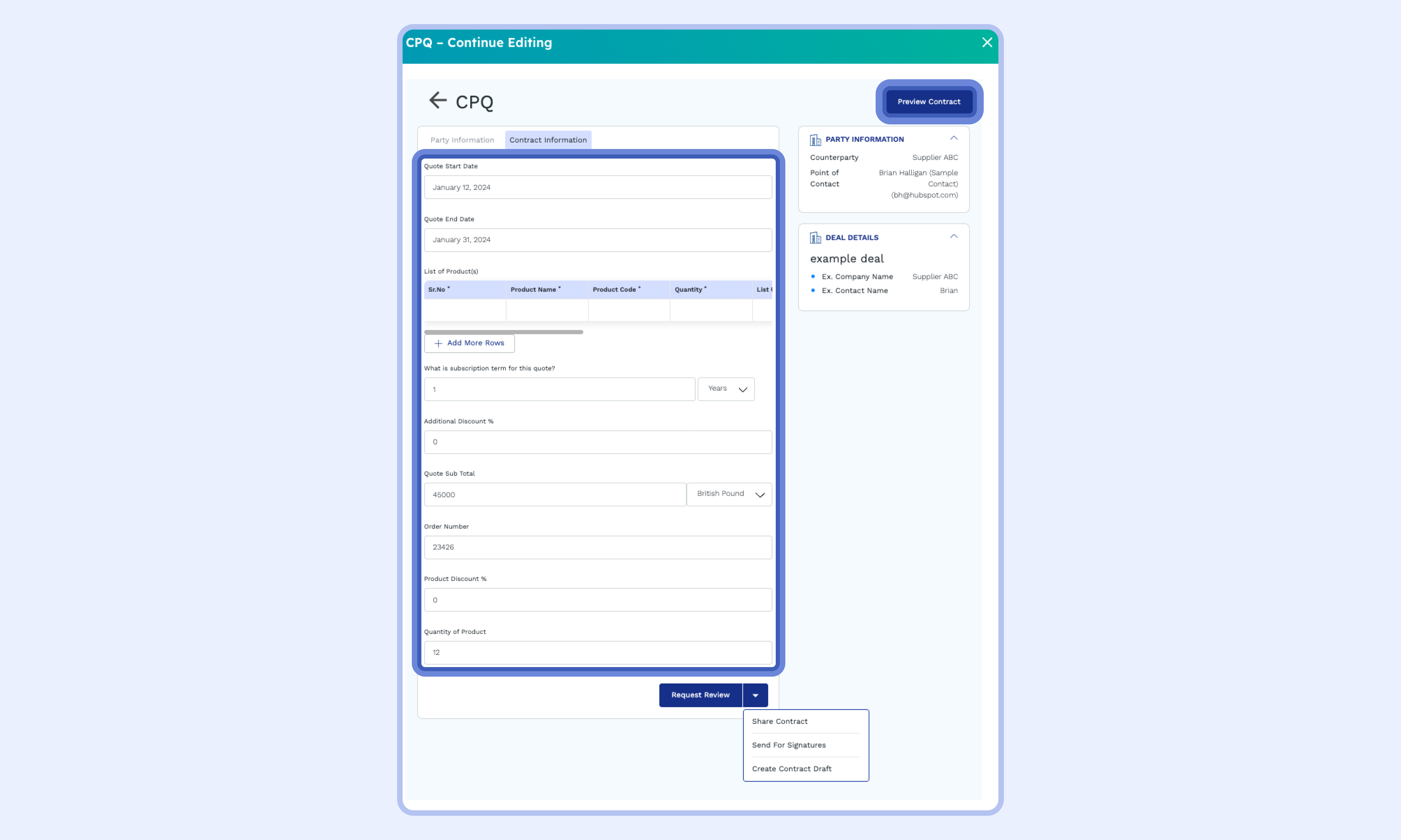 7 - Check the correct HubSpot data has populated the correct parts of the contract.