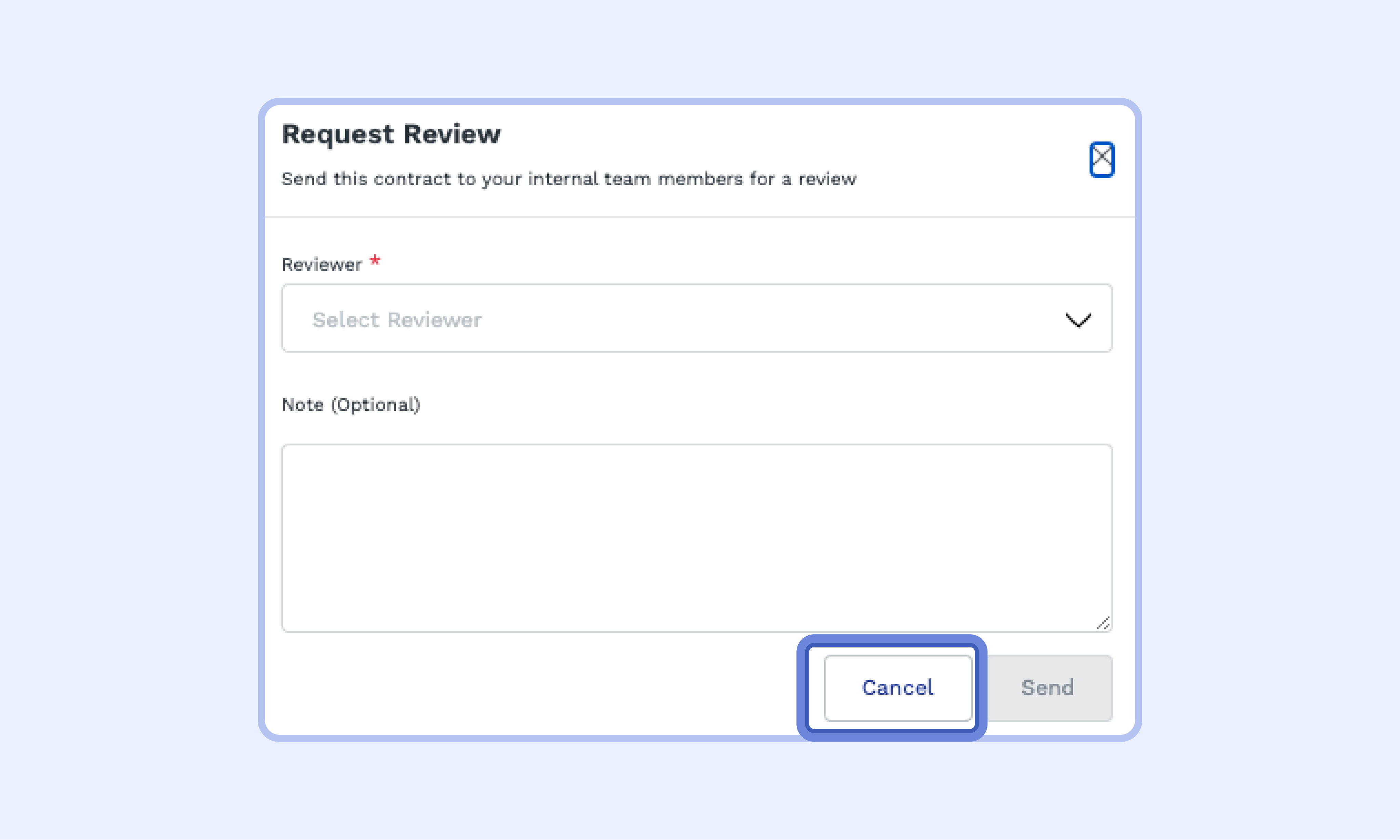B. Click Share Contract, then ‘Cancel’ to review the next action.