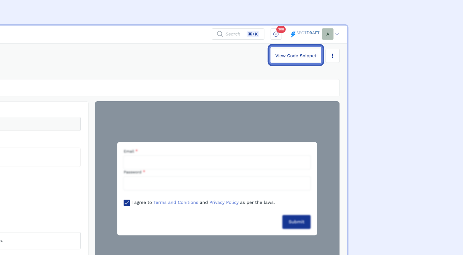 SpotDraft provides a code snippet you can use to embed your Clickthrough Agreement onto your website or platform.