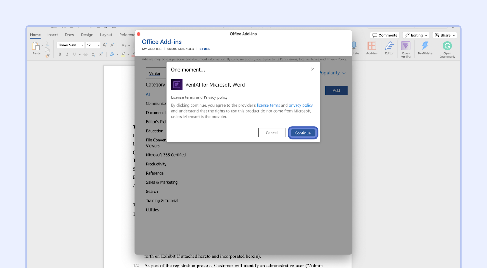 VerifAI will now be added to your Microsoft Word.